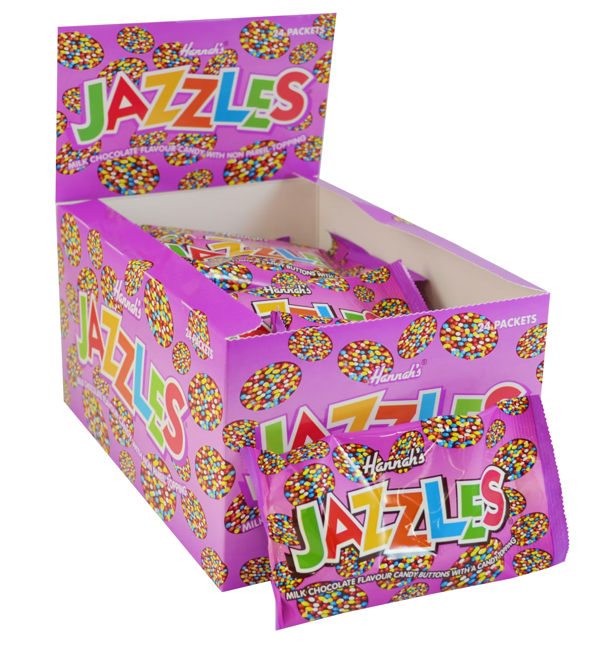 The original chocolate flavoured candy drops with a non-pareilles topping. Hannah's Chocolate Jazzles are an old school favourite, these chocolate treats are loved by all. These small bags are the perfect addition to your pocket money sweet collection.
